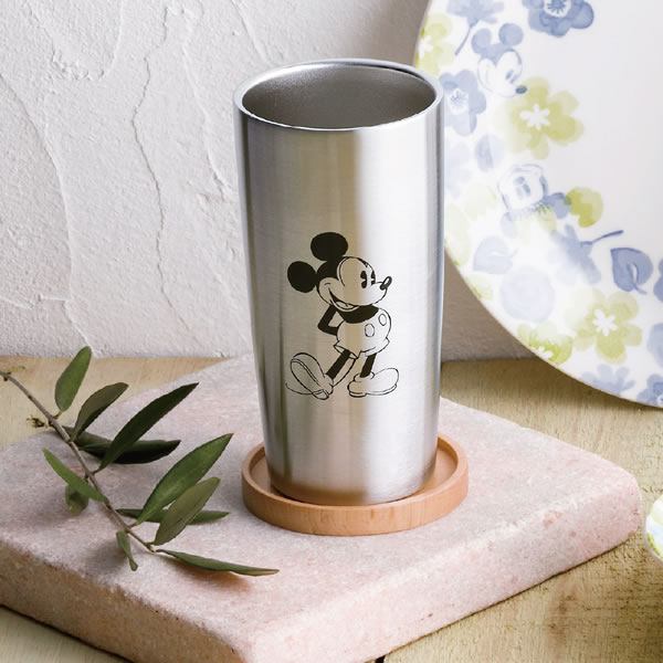 高品質な18-8ステンレスを使用した真空タイプのステンレスタンブラーとコースターにも、お菓子を乗せるプレートに使える天然木の蓋付きセット。