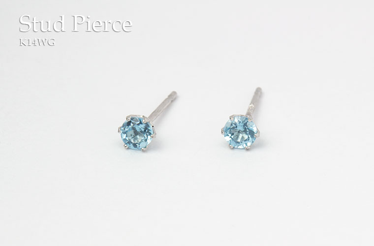 ピアス 6本爪 スタッドピアス ブルートパーズ 3mm 14Kホワイトゴールド 11月誕生石 一粒ピアス シンプル K14WG 14KWG 14金 日本製 [sy]