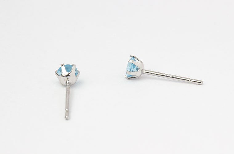 商品種類 ピアス 石の種類 ブルートパーズ 地金種類 K14ホワイトゴールド 商品仕様 石 約3mm 枠 直径 約3.5mm 厚み 約2.5mm ポスト部 長さ 約9mm 太さ 約0.6mm 総重量 約0.2g (キャッチ含まず) ニッケルフリー 国産 日本製
