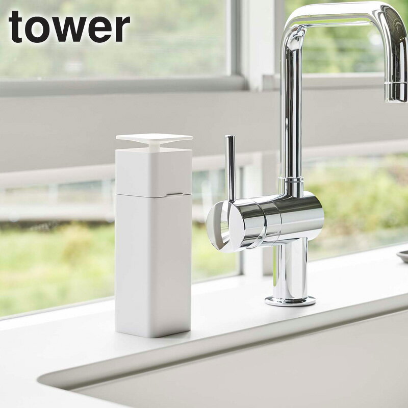 片手で出せるディスペンサー タワー おしゃれ シンプル ポンプ ディスペンサー スクエア 液体 250ml 食器 洗剤 化粧水 アルコール 詰め替え ボトル キッチン リビング 花粉症 風邪 感染予防 ホワイト ブラック tower 山崎実業 yamazaki 5213 5214 おすすめ