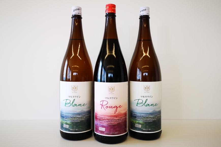 商品説明 内容量 ・マルスワインルージュ(赤)1,800ml×1本(アルコール分:12%) ・マルスワインブラン(白)1,800ml×2本(アルコール分:12%) ※ぶどう由来の自然成分の一部が沈殿する場合がございますが、品質には全く問題ありません。