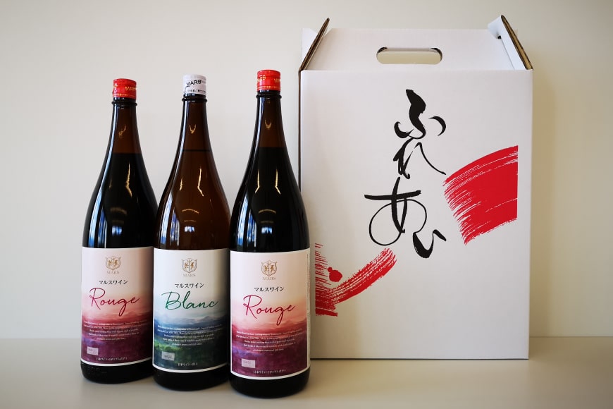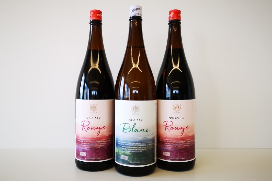 商品説明 内容量 ・マルスワインルージュ(赤)1,800ml×2本(アルコール分:12%) ・マルスワインブラン(白)1,800ml×1本(アルコール分:12%) ※ぶどう由来の自然成分の一部が沈殿する場合がございますが、品質には全く問題ありません。