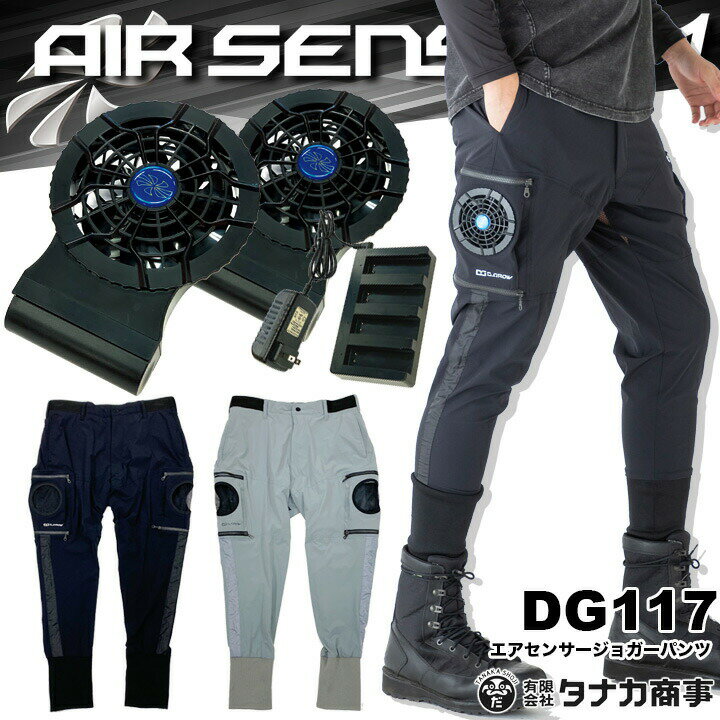 【空調服】AIR SENSOR エアーセンサーカージョガーパンツ ウエストゴム DG117 M-3L コードレスファン バッテリーフルセット ファスナー金属 ボタン金属 涼しい 屋外作業 熱中症対策 アウトドア レジャー スポーツ観戦 クロダルム