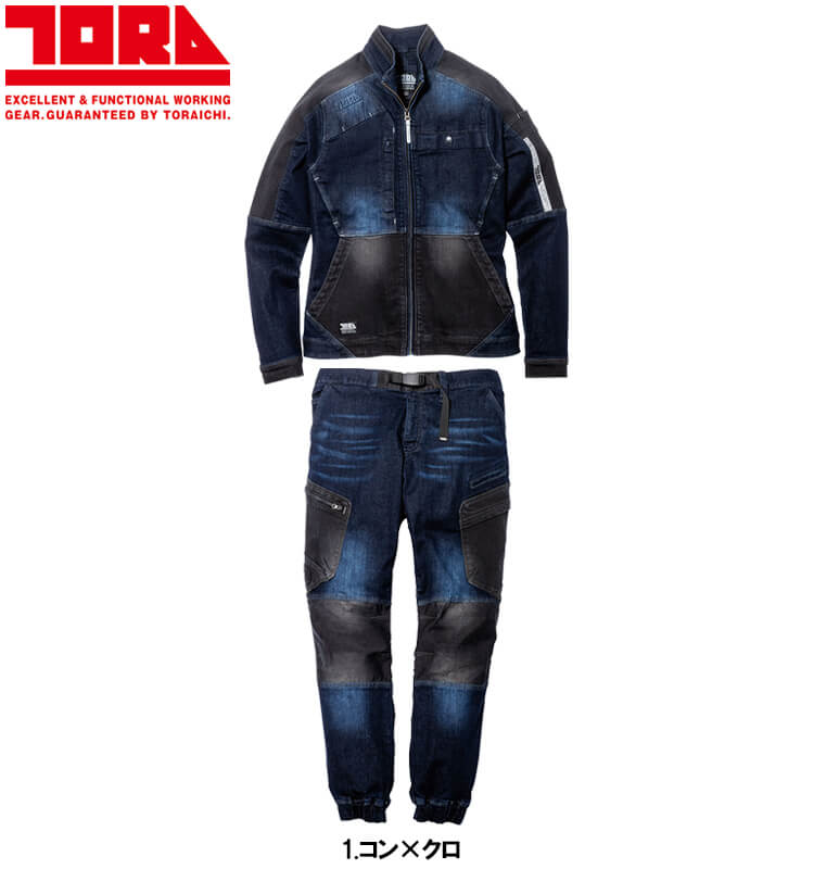 寅壱 デニムジョガーパンツ 8840-235 ストレッチ 高強度 作業着 ズボン 作業服 TORAICHI 寅一 トライチ プロユニステッカー付 1.コン×クロ