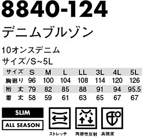 作業服 上下セット 寅壱 TORAICHI ブルゾン 8840-124 5L & カーゴジョガーパンツ 8840-235 5L 通年 ストレッチデニム 作業着 メンズ 送料無料