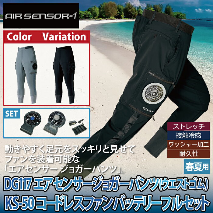 電動ファン用ウェア エアセンサージョガーパンツ フルセットDG117 KS-50 コードレス ケーブルレス DGROW クロダルマ ファン用 作業着 作業服 ユニフォーム