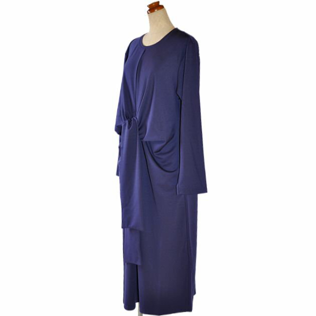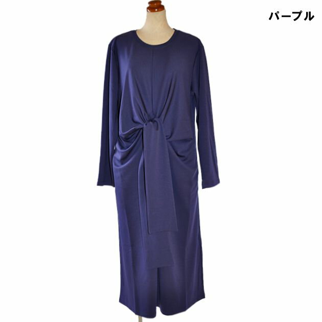 アウトレット!ウエストリボンストレッチワンピース 滑らかな手触りのストレッチ生地を使ったロングワンピース♪