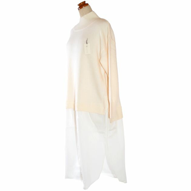 ○アウトレット品 ○ネームカット品 ・カラー:1色 オフホワイト(セーター部分はベージュっぽいオフ) 製品サイズ(表示サイズ-製品タグに表示されたサイズ、製品実寸-製品平置き寸法) 表示サイズF(フリーサイズ) 製品実寸:バスト-106、袖丈-43、着丈-96、肩幅-49 全てセンチ単位。