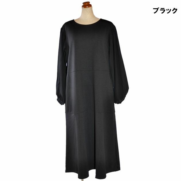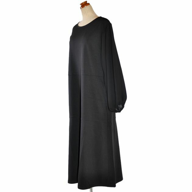 アウトレット!袖切替えティアードワンピース 袖を薄地の軽い生地で切り替えたカットソー生地のロングワンピース♪