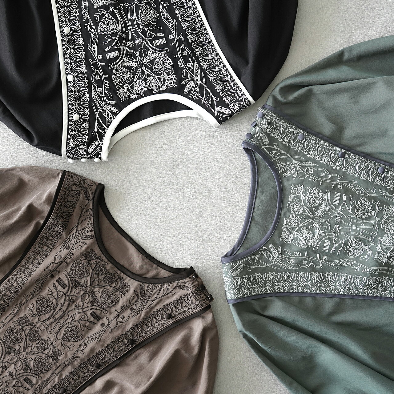 スナップボタンでフロントが大きく開く仕様なので、メイク移りを気にせずに着替えることが出来ます。