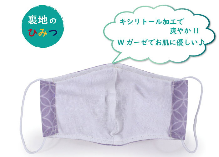 マスク 洗えるマスク Wガーゼ 接触涼感 薄紫 七宝 息苦しくない 肌に優しい キシリトール加工 夏 洗える 在庫あり 日本製 耳ゴム 国内発送 個包装 女性 男性 大人 大きめ