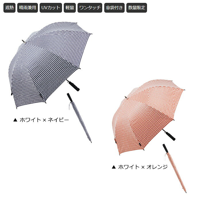 サイズ 65cm 重量 約300g UVカット率 99%以上 カラー ホワイト×ネイビー、ホワイト×オレンジ 素材 ポリエステル100%(裏面UVカットコーティング)、親骨/カーボン、シャフト/アルミ
