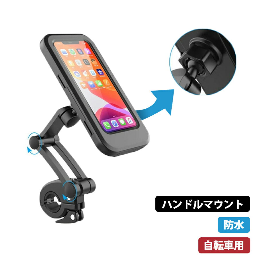 スマホホルダー 自転車 耐水 スタンドケース バイク スマホ ホルダー ハンドルマウント 雨天 全天候型 防塵防滴 スマホスタンド 携帯ホルダー 回転 角度調節 スタイリッシュ 金属製 工具要らず フリーサイズ