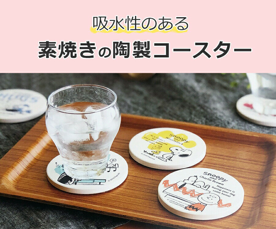 【スヌーピー 陶器の吸水コースター】SNOOPYグッズ 水滴を吸水してくれる、かわいいコースター プレゼントにもおすすめ 【金正陶器】【Silent-サイレント-】
