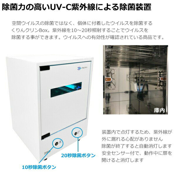 ・・・・・・・・・商品特長・・・・・・・・・ ■くりんクリンBoxとは 除菌力の高いUV-C紫外線による除菌装置。