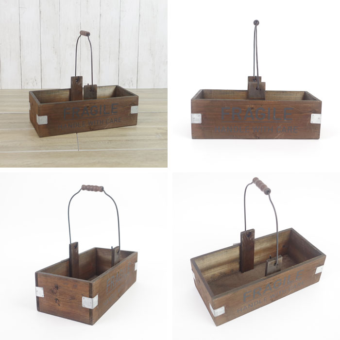 プランター 長方形 おしゃれ ボックス フラワーポット ガーデンファニチャー 庭 収納 収納ボックス フラジール 木製 ハンドルボックス ブラウン ナチュラル WE-903 箱 アンティーク 収納箱 収納ケース インテリア 小物入れ リビング キッチン 台所 玄関