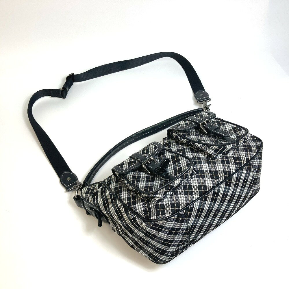 【新着】【中古】Burberry Blue Label(バーバリーブルーレーベル) ショルダーバッグ チェック柄 黒×白×マルチ ナイロン×レザー
