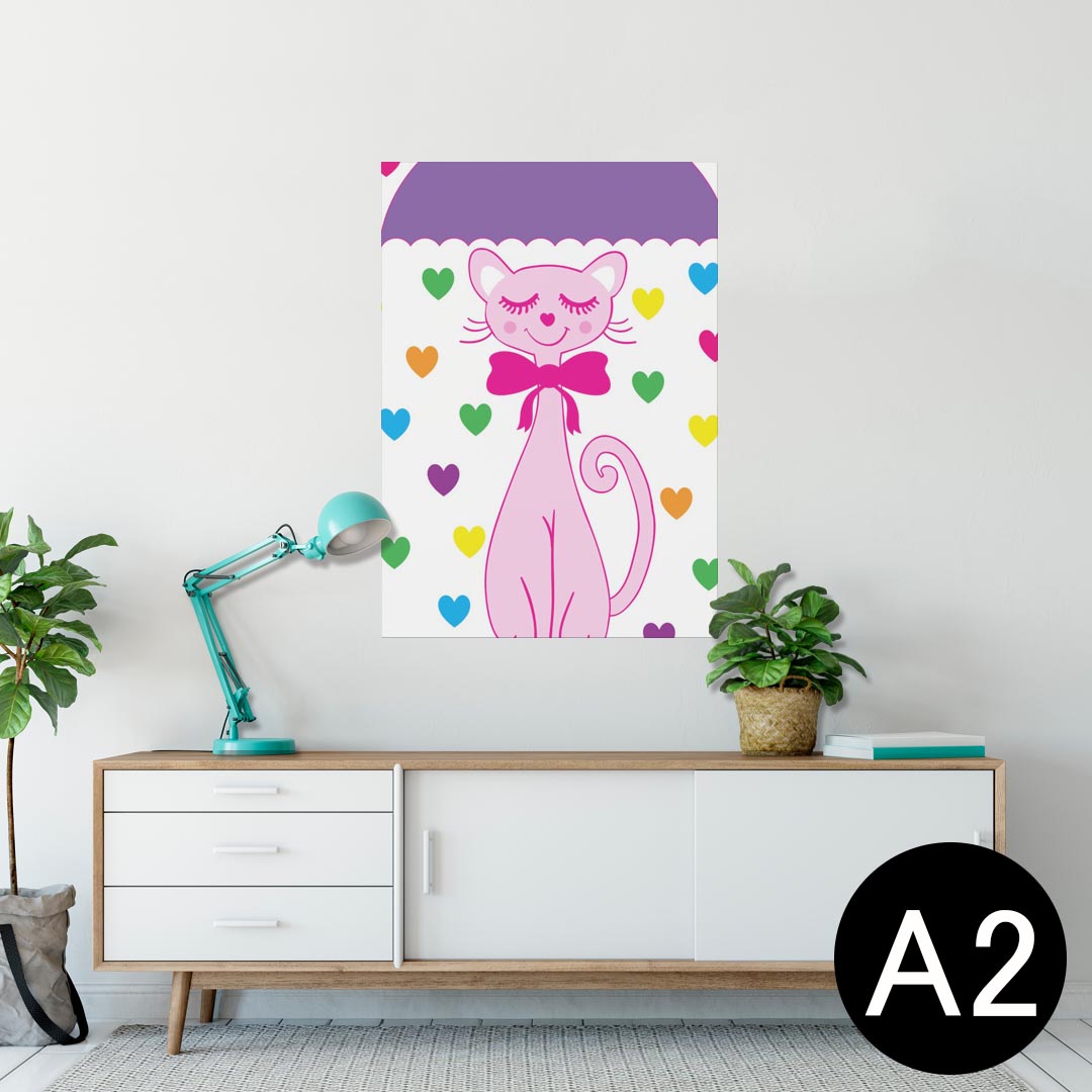 ポスター ウォールステッカー シール式ステッカー 飾り 420×594mm A2 写真 フォト 壁 インテリア おしゃれ 剥がせる wall sticker poster 006418 ねこ 傘 ハート