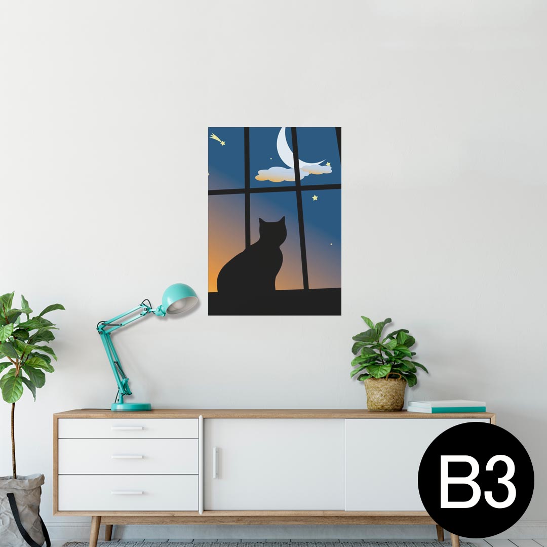 ポスター ウォールステッカー シール式ステッカー 飾り 364×515mm B3 写真 フォト 壁 インテリア おしゃれ 剥がせる wall sticker poster 001048 猫 三日月