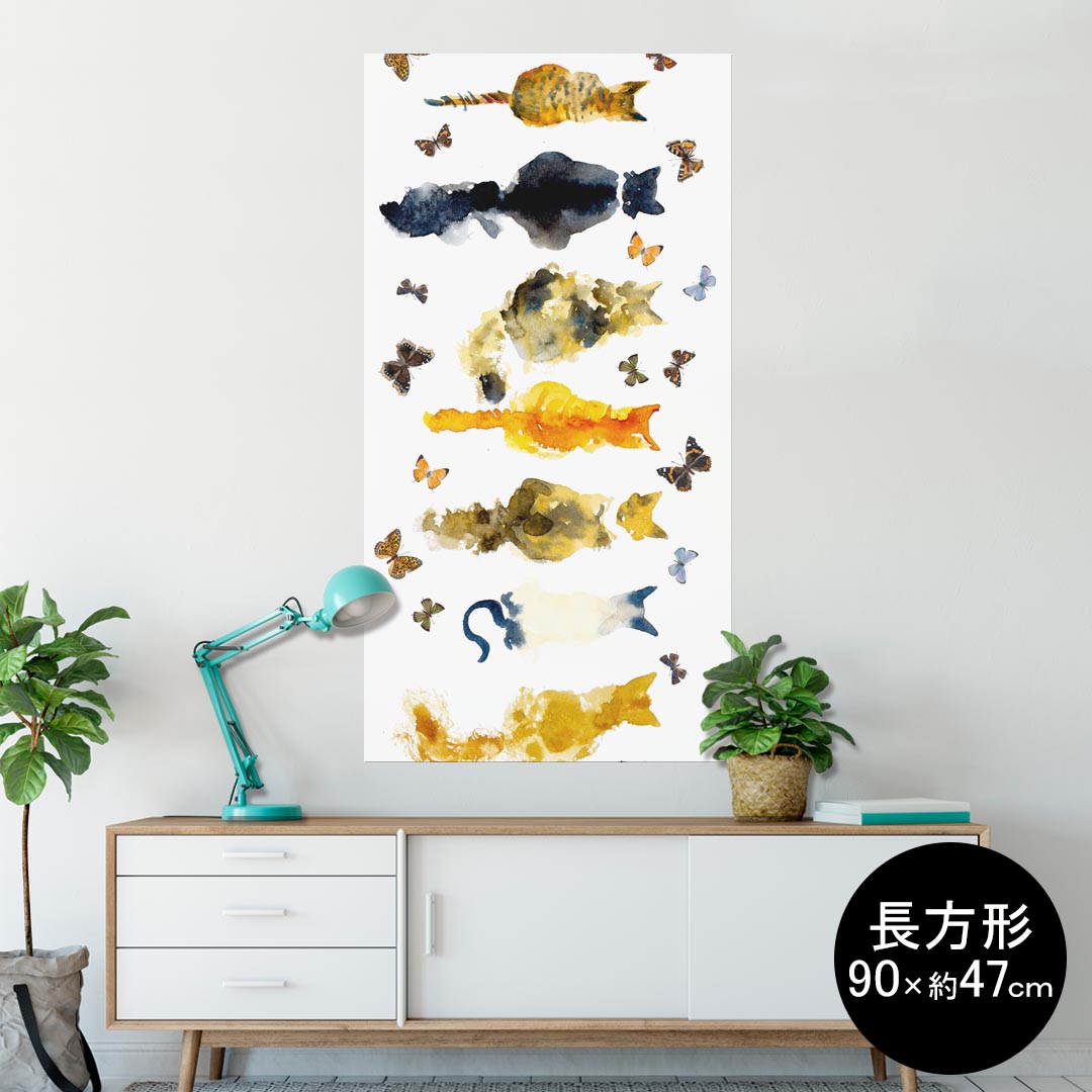 ポスター ウォールステッカー 長方形 シール式ステッカー 飾り 90×47cm Lsize 長方形 壁 インテリア おしゃれ 剥がせる wall sticker poster 010276 動物 猫 水彩