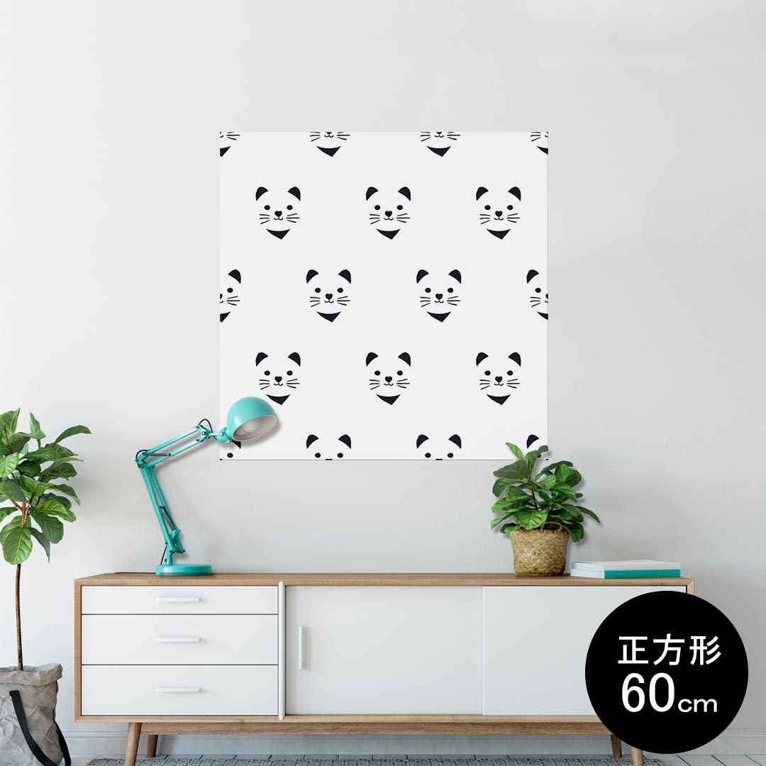 ポスター ウォールステッカー シール式ステッカー 飾り 60×60cm Msize 正方形 壁 インテリア おしゃれ 剥がせる wall sticker poster 010485 動物 猫 白 黒