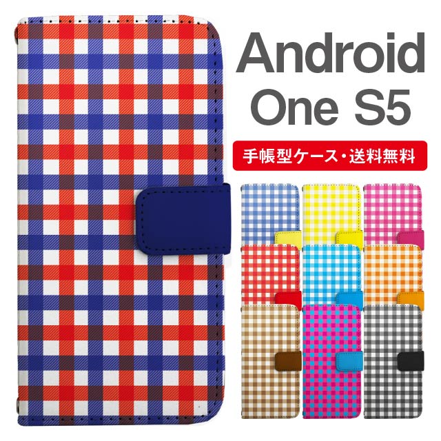 スマホケース 手帳型 Android One S5 スマホ カバー アンドロイドワン おしゃれ アンドロイドワンケース Android One S5ケース ギンガムチェック バイカラー