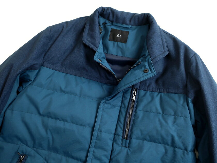 23区 HOMME ニジュウサンク オム PERTEX ナイロン混 カラー切替 ダウンジャケット ブルゾン JRNSKW0401 / 1401 定5.8万 ネイビー ブルーグリーン 46-01 48-02 50-03▲117▼20224k20