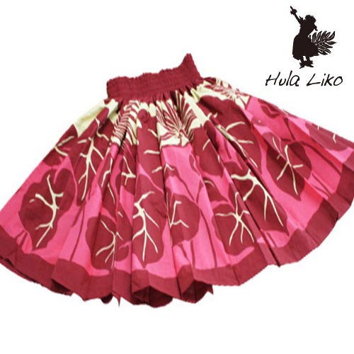 フラダンス 衣装 パウスカート ワイン エンジ タロイモ リーフ スカート フラ 衣装 ドレス フラリコ ハワイアン リゾート レッスン オーダーメイド フリル ギャザー 通販 シングル ウエストゴム レディース 綿混 フラ レッスン おしゃれ