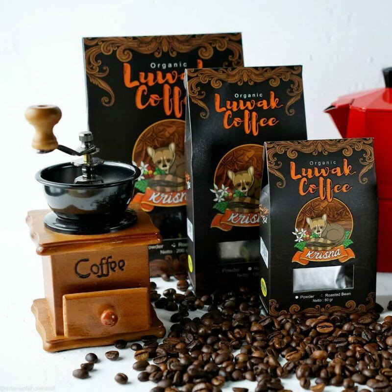 インドネシア語でコピ(kopi)はコーヒー、ルアク(luwak)はマレージャコウネコ(イタチ科)の現地での呼び名を意味しており、「ジャコウネココーヒー」とも言われています。