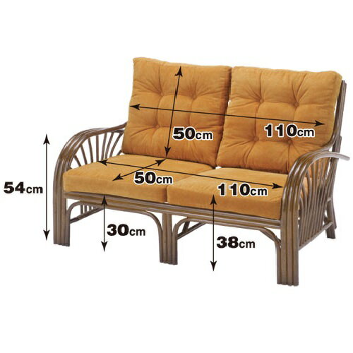 幅125×奥行78×高さ84cm(座面高38cm)人掛けソファ今枝商店 籐 ラタン家具チェア 二人掛けY632B Y-632B