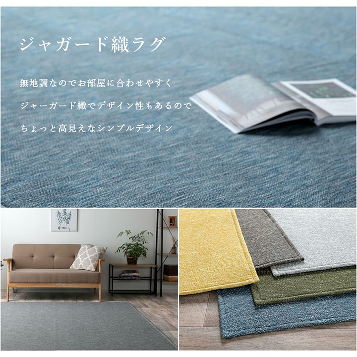 ラグカーペット 「クラッシュ」 約185×185cm サイズ 約幅185×長さ185×厚み0.7cm 組成 表地:ポリエステル100% (先染めジャガード) 中材:ウレタンフォーム 裏地:ポリエステル100%(滑り止め付き) 製造国 中国製 洗濯表示 ※手洗い洗濯OK(液温は30℃を限度とし、弱い手洗いで洗濯ができる) ●先染めジャガードラグ「クラッシュ」 無地調のデザインでどんなお部屋でも合わせやすい。