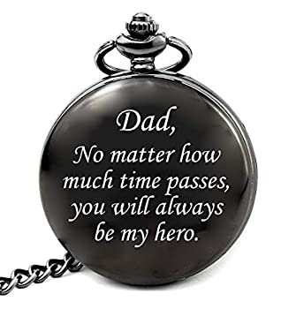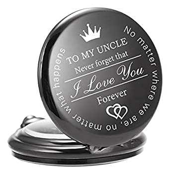 【中古】【輸入品・未使用】ManChDa 刻印 懐中時計 カスタマイズ to My Uncle、ローマ数字 ブラックカバーダイヤル クォーツ メンズ おじさん用 + チェーンボックス 1.ブラ