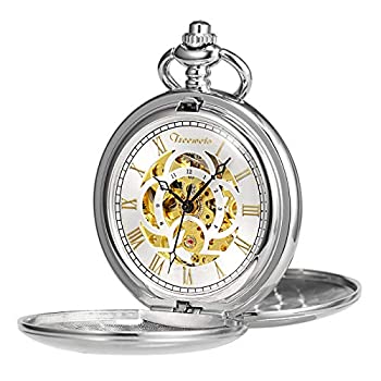 【中古】【輸入品・未使用】TREEWETO 懐中時計 クラシック スムーズ ダブルケース 機械式 シルバー 懐中時計 スチームパンク ローマ数字 フォブウォッチ メンズ レディース